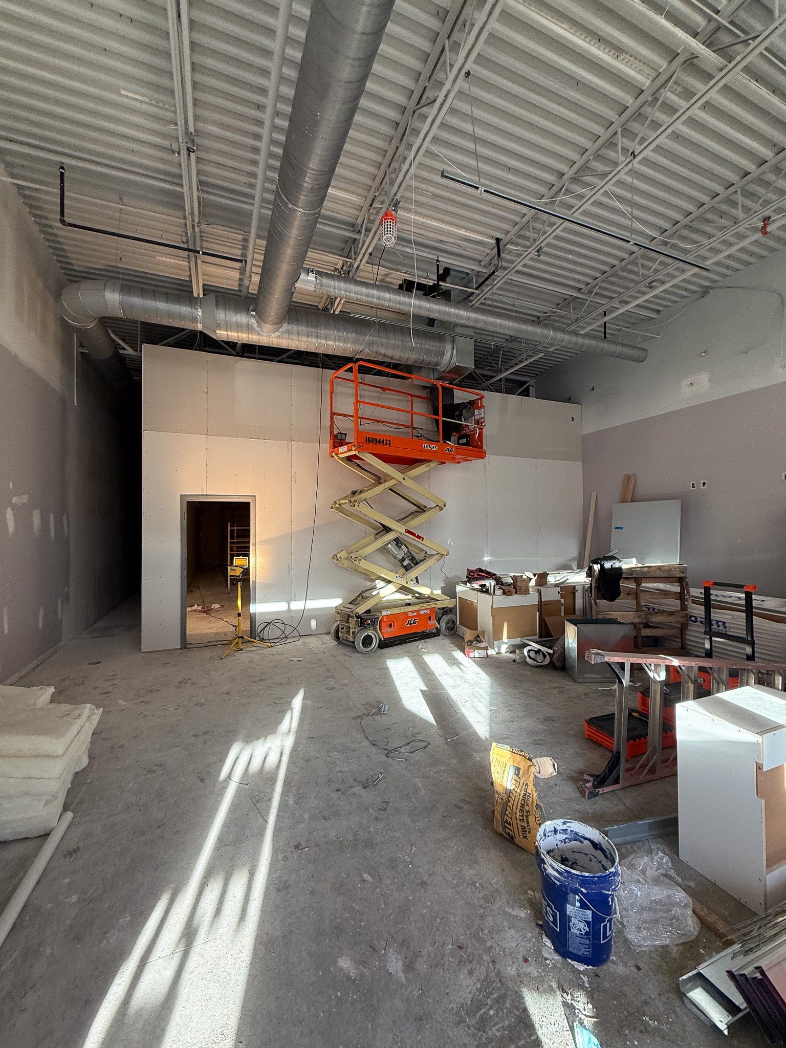 Progress continues at the Body Alive Fitness buildout as interior work begins to take shape across the space.